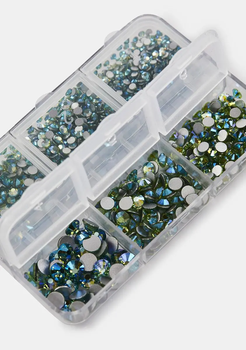 has you lookin’ like a real-life mermaid. This set has a variety of glass flatback rhinestones that come in six different sizes and can be applied to the face, nails, and hair.