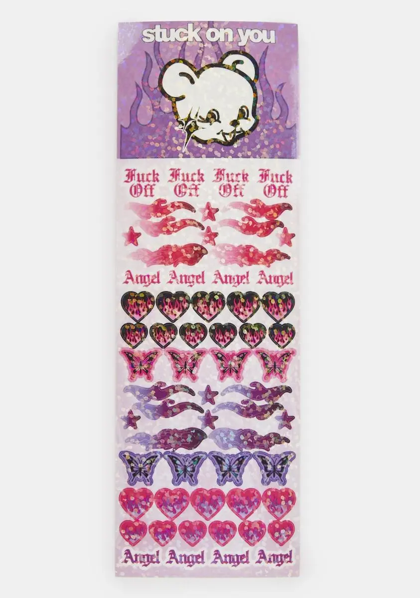 cuz you’re heavenly. Have some fun with these eye and body stickers that have glitter heart, butterfly, and word graphic designs.