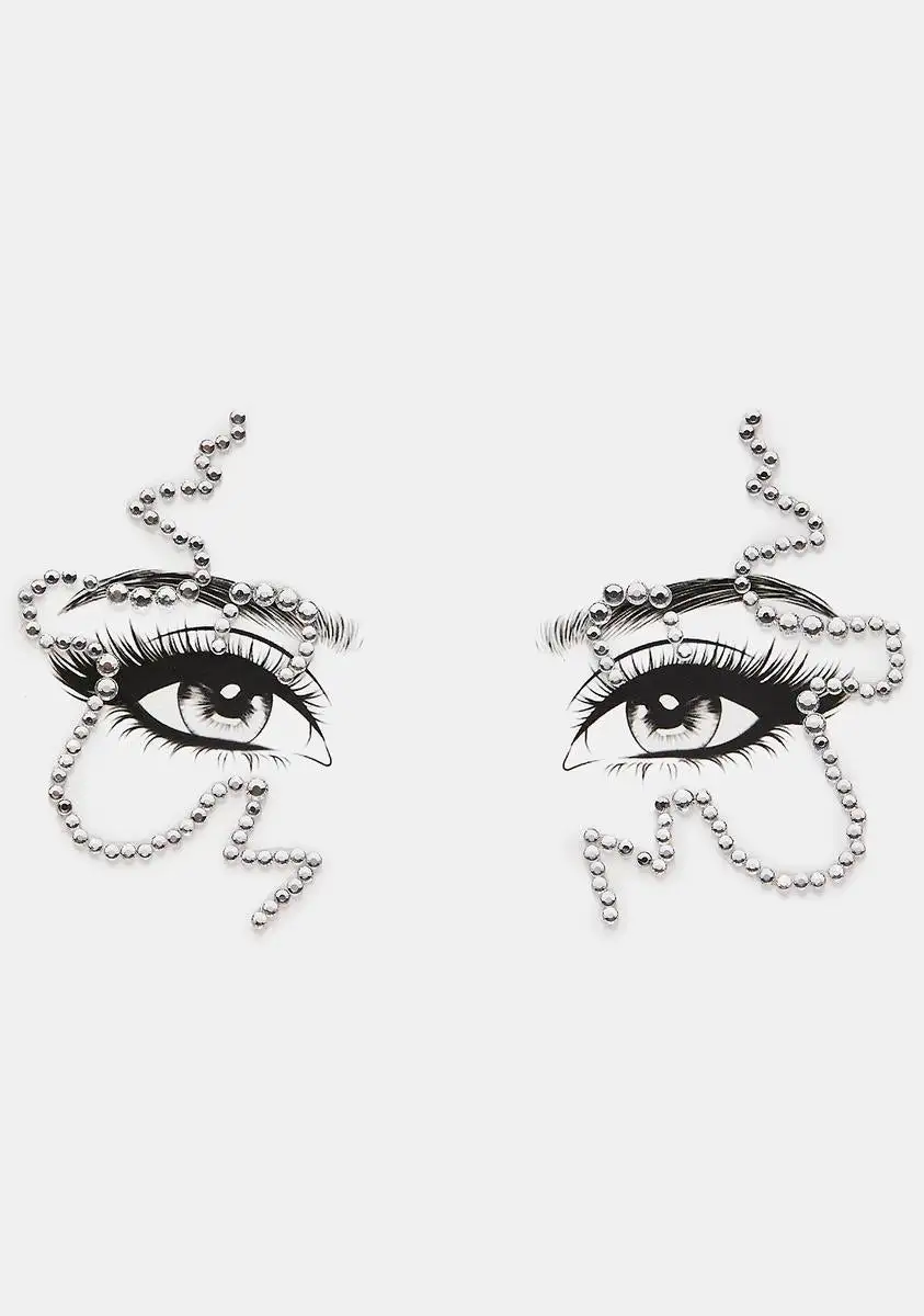 X_My Glitter Boutique Silver Squiggly Rhinestone Face Gems