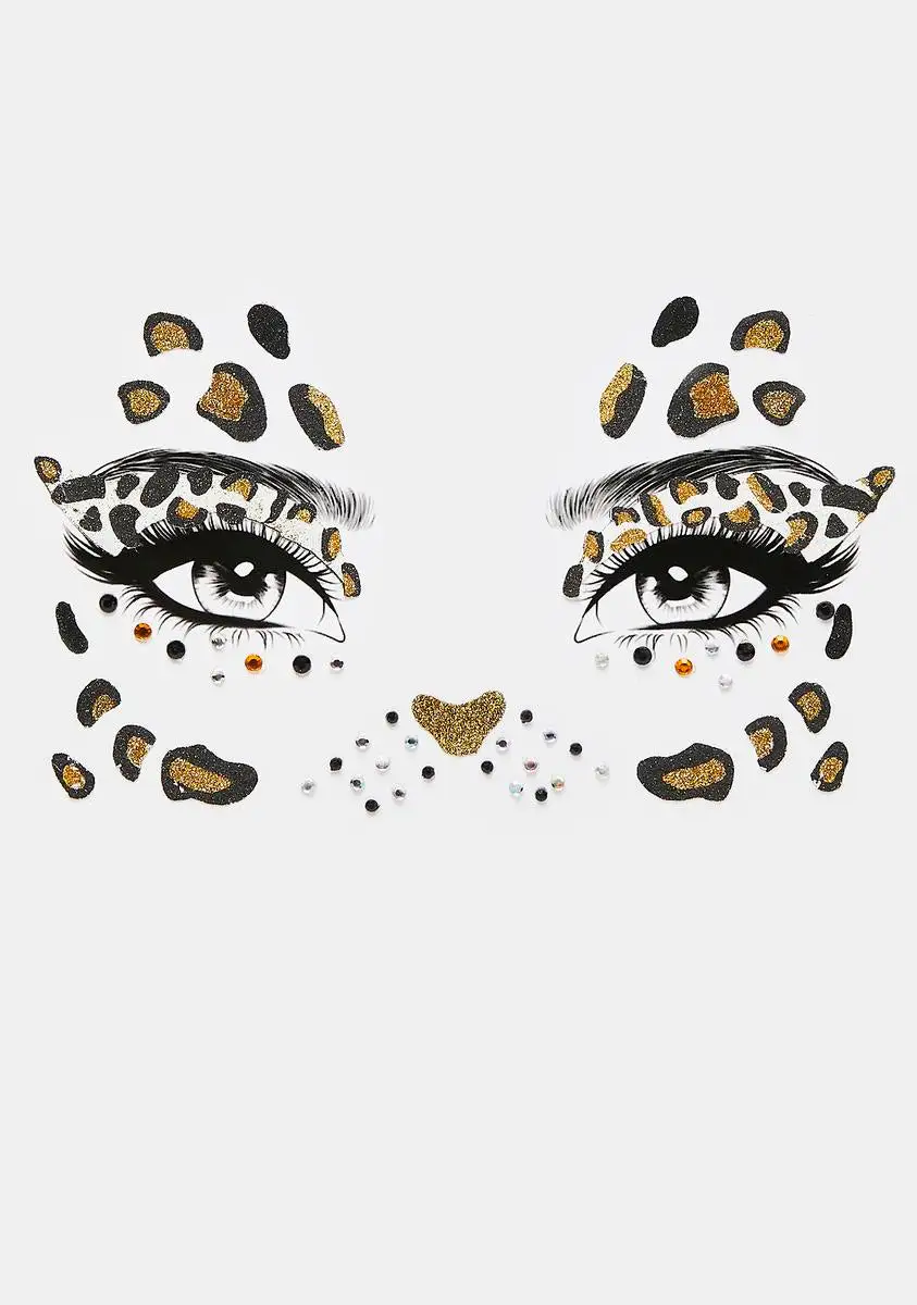 cuz your claws are out. These face stickers come in a spotted glitter construction, with rhinestone details.
